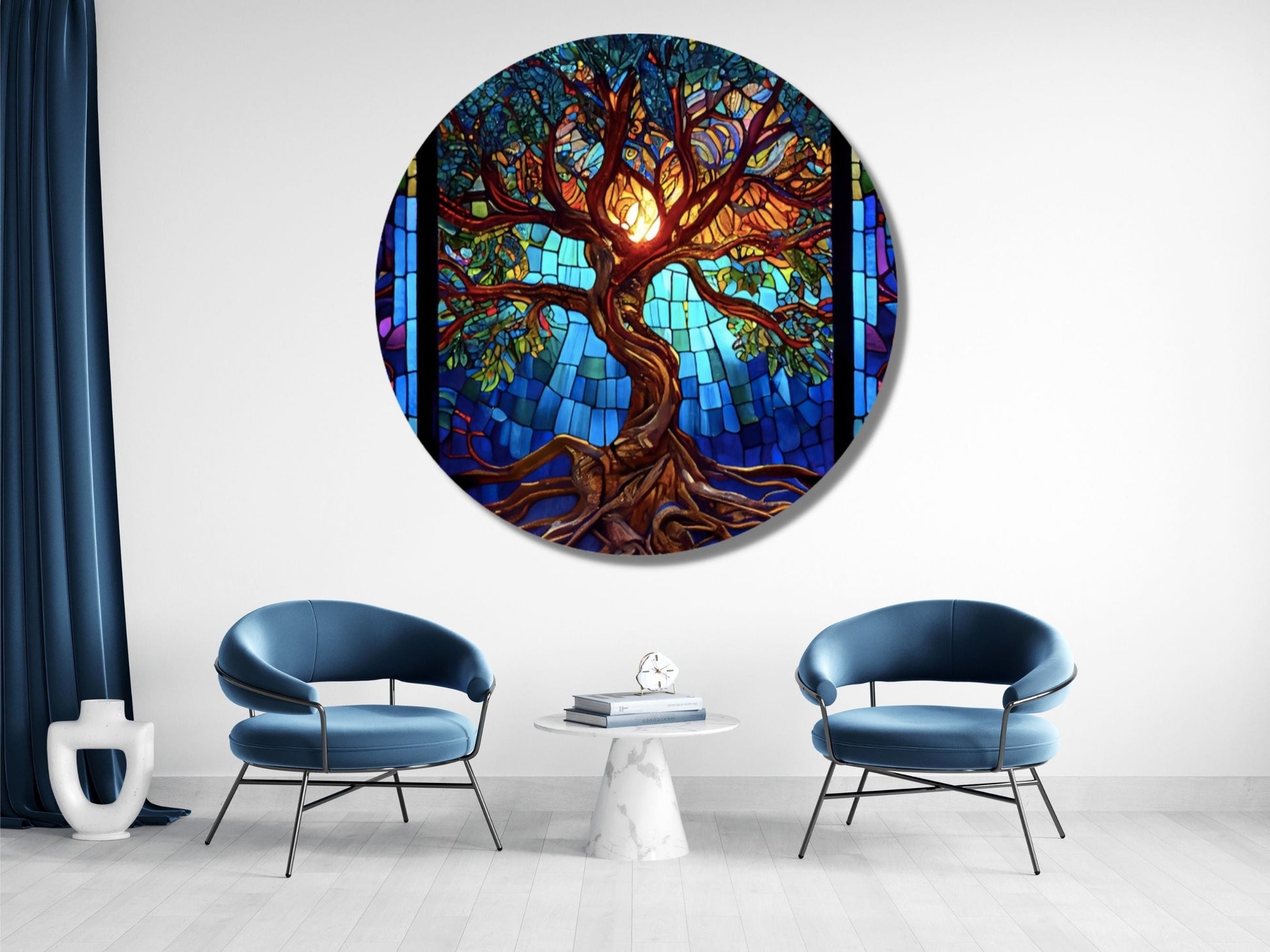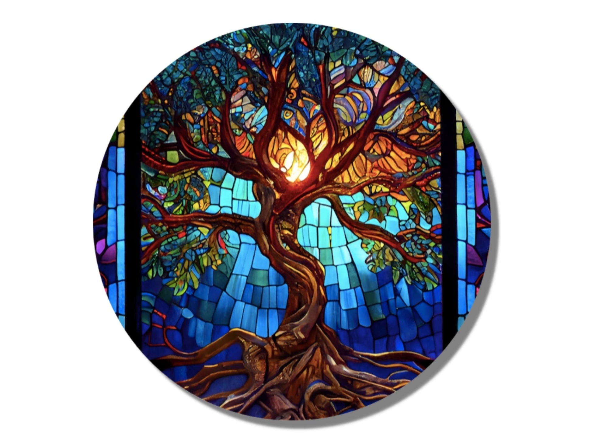 Stained Glass Wall Art Tree of Life Window-Wall Painting Decor Panel